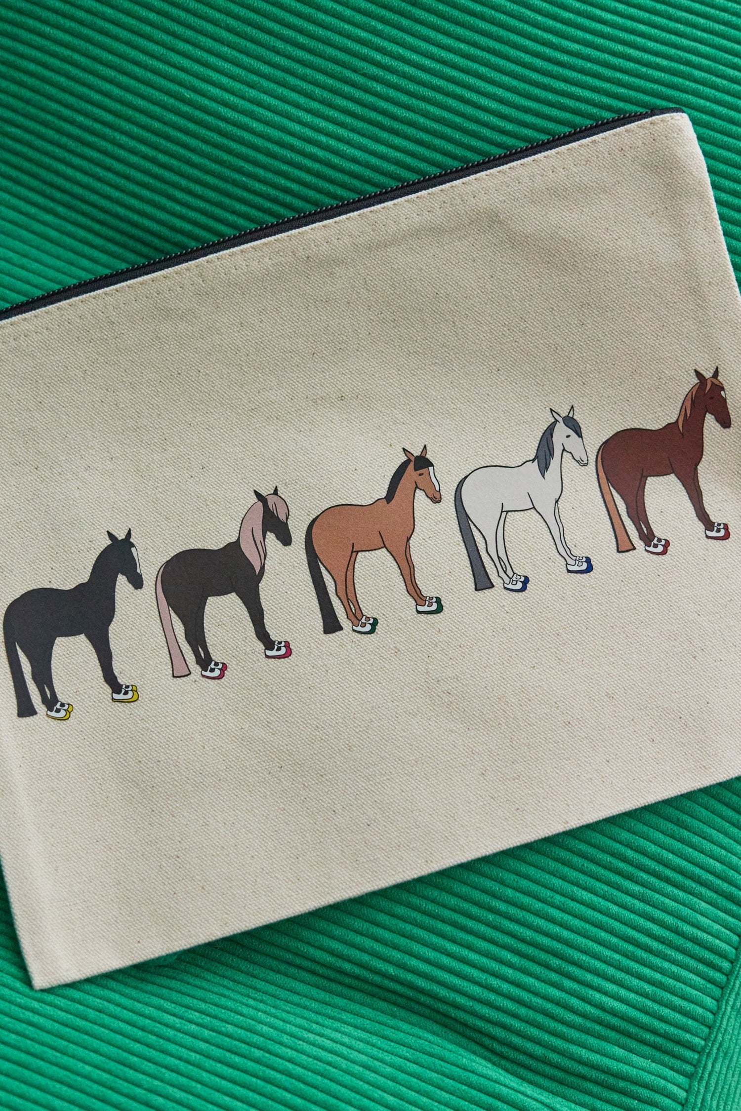 pouch|うわばきをはいた馬たちのスクエアポーチ