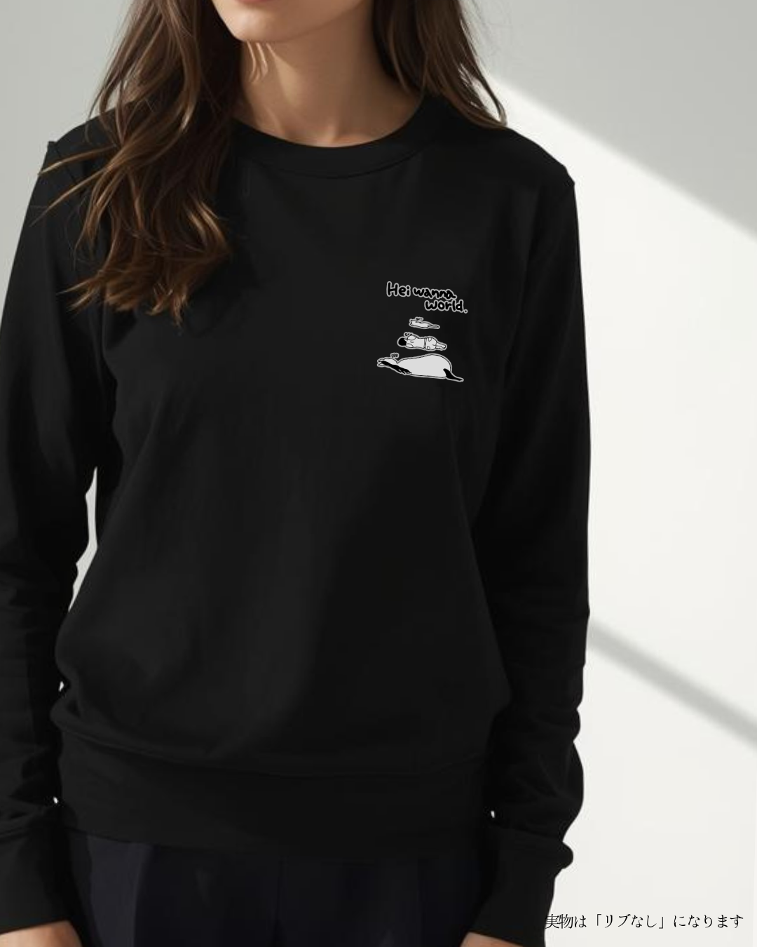 胸元にHeiwannaWorld/袖リブなし(黒/S)