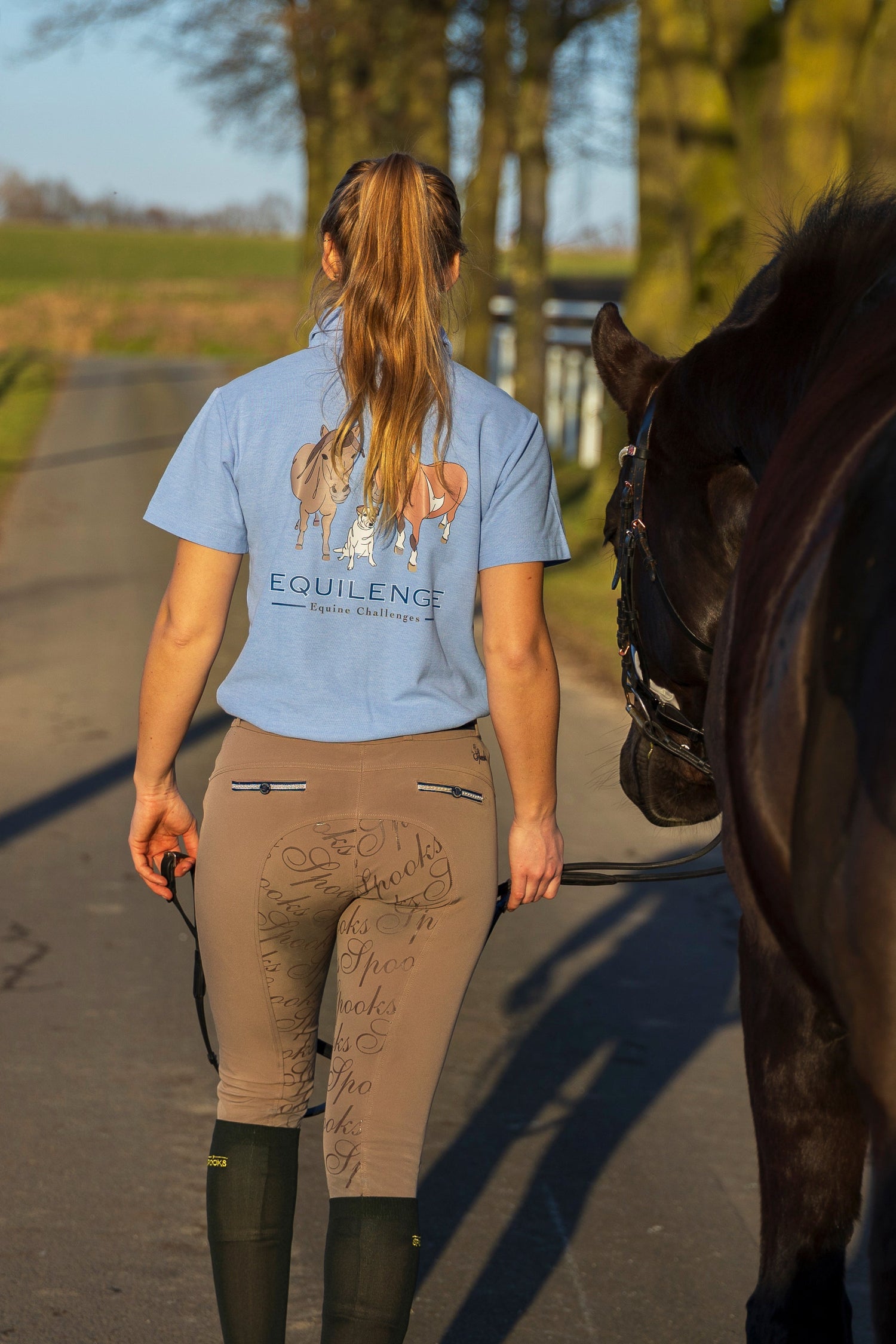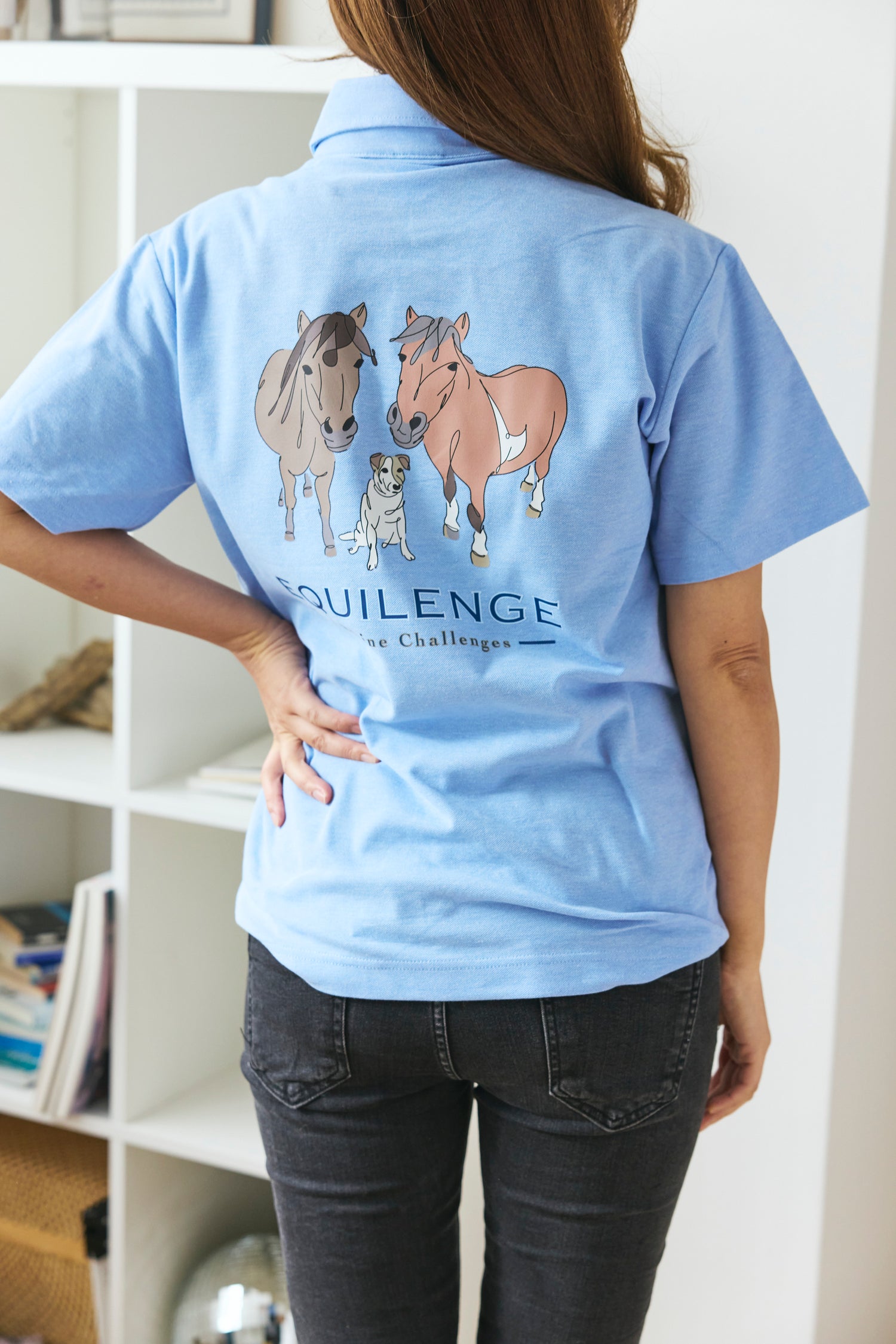 EQUILENGEを率いる馬医者Shunさんの家族の一員であるポニーのチャーリーちゃんとミラちゃん、そしてワンちゃんのディビちゃんがモデルになった可愛らしいイラストを背中に大きくプリントしました。
